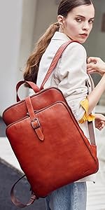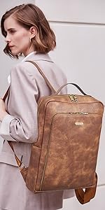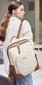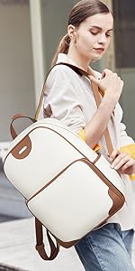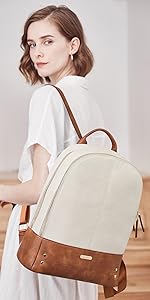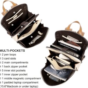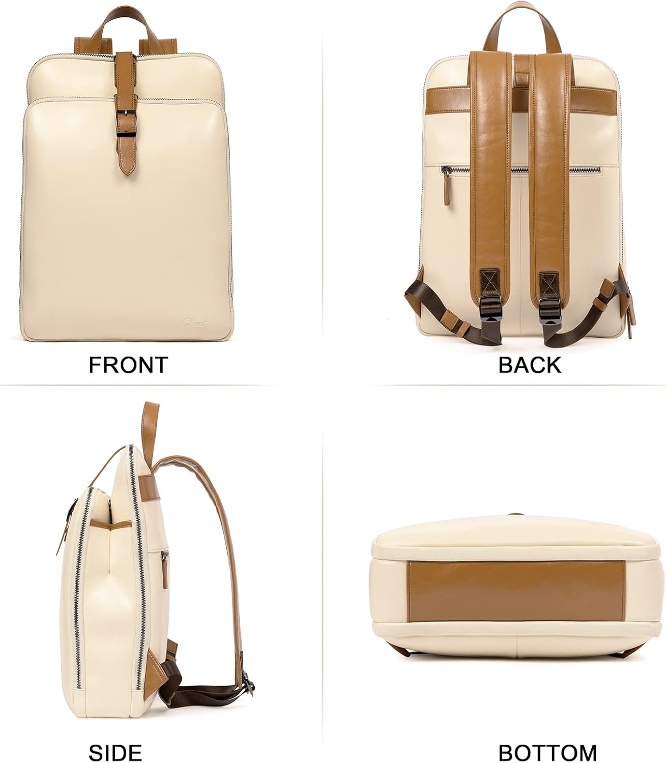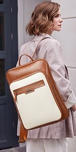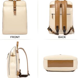 CLUCI Laptop Backpack for Women 15.6 Inch Beige With Brown i##e##s: Leather ^^ Purse ^^ Travel Computer Backpack ^^ Business Bag ^^ College Daypack :i##e##s