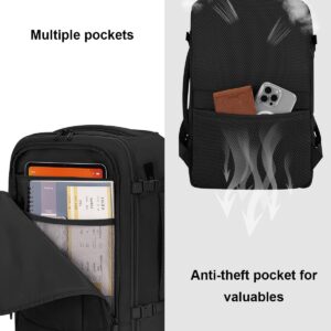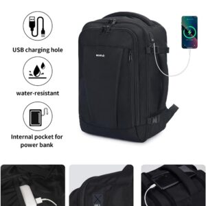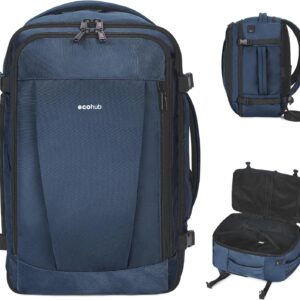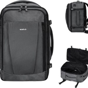 ECOHUB 17” Small Travel Backpack, United Airlines Personal Item Bag 16.7″x10″x8″ with 13 Pockets Carry on Backpack with USB Port Luggage Sleeve Travel Essentials for Men Women Water Resistant, Black