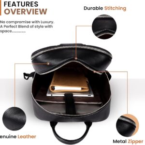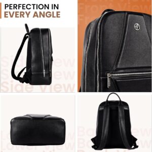 Hammonds Flycher Genuine Leather Travel Backpack for Men and Women, Stylish Travel Bag, 14″ Laptop Bag, Durable & Spacious Laptop Backpack for Daily & Business Use – Black