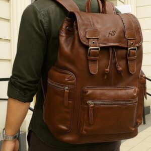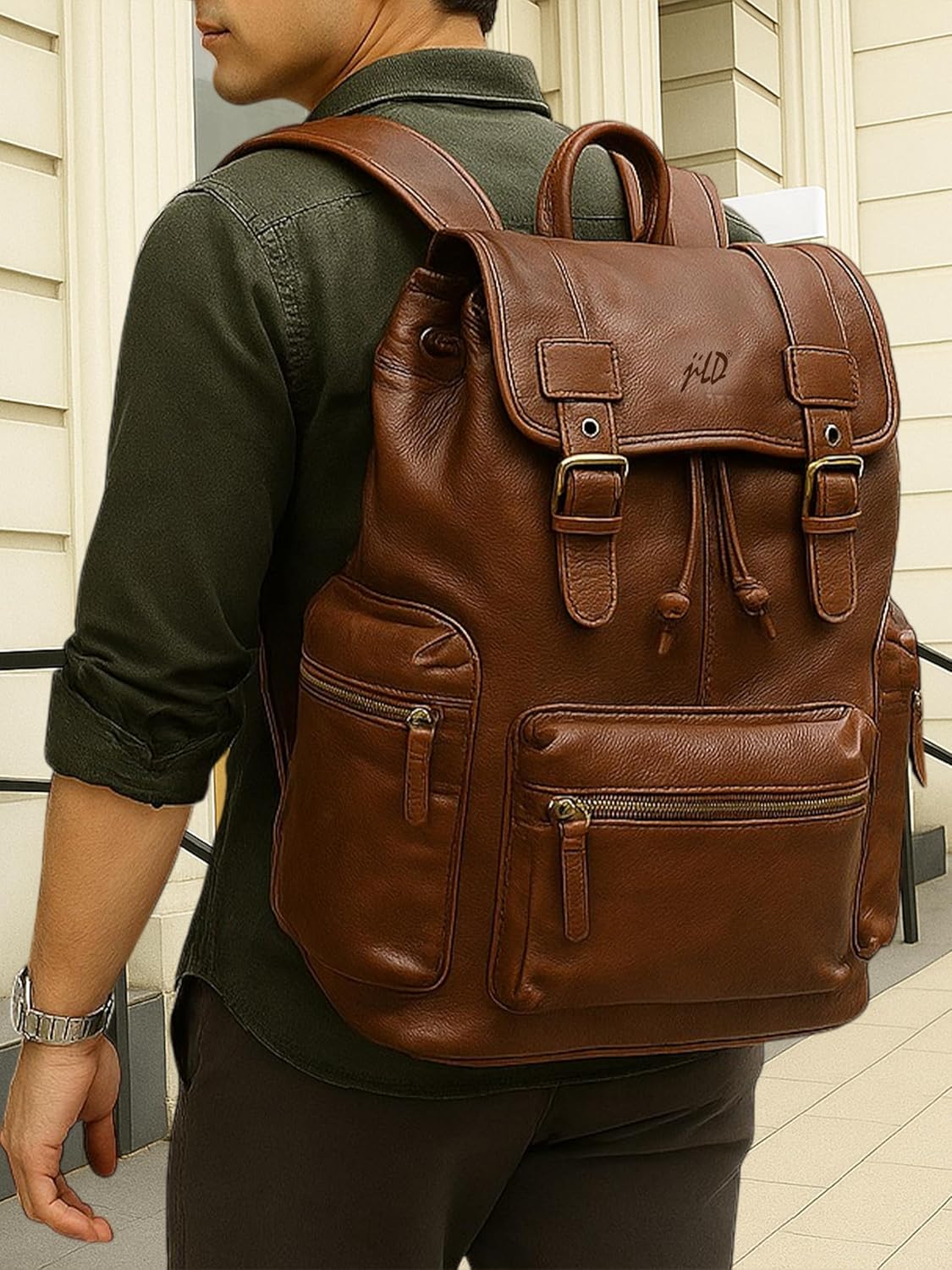 Jild Genuine Leather Backpack for Women or Men Carry-On Travel Backpack Shoulder Hiking Camping Vintage Leather Laptop Bag (Tan)