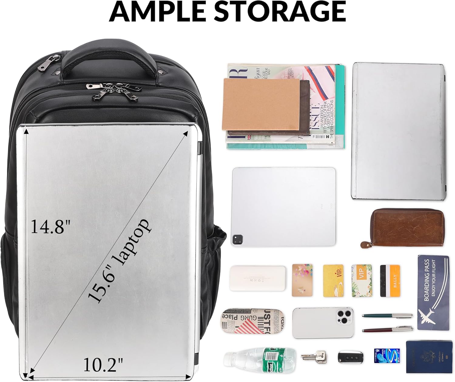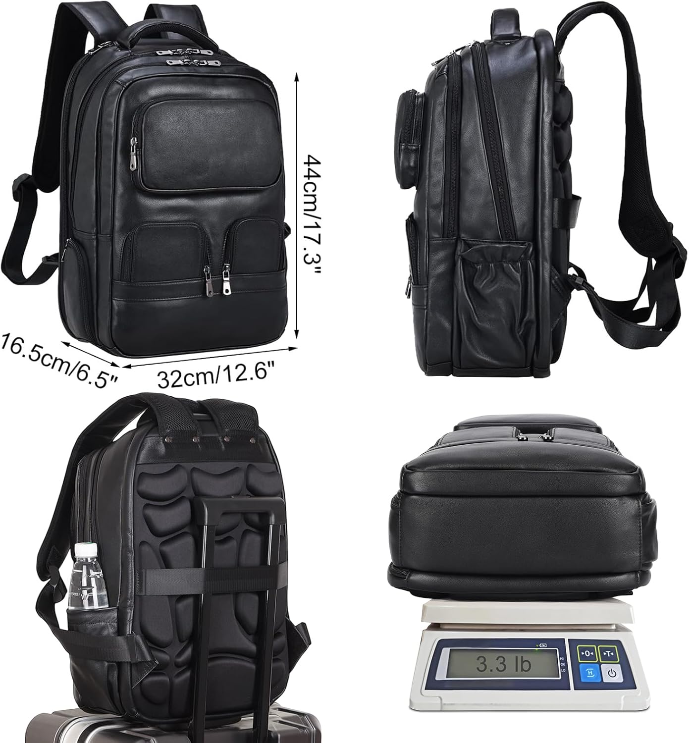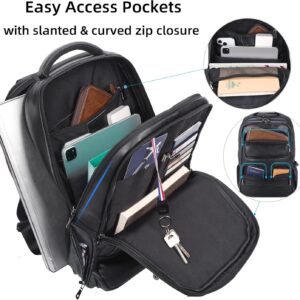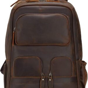Masa Kawa Large Black Laptop Backpack 15.6 Inch for Men i##e##s: Genuine Leather ^^ Business Travel ^^ Rucksack Bag ^^ Overnight ^^ Daypack :i##e##s