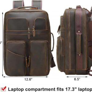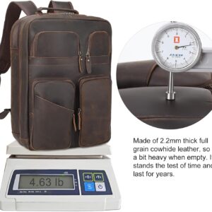 TIDING 17.3″ Full Grain Leather Laptop Backpack for Men Multi Pockets Casual Daypack Business Travel Rucksack