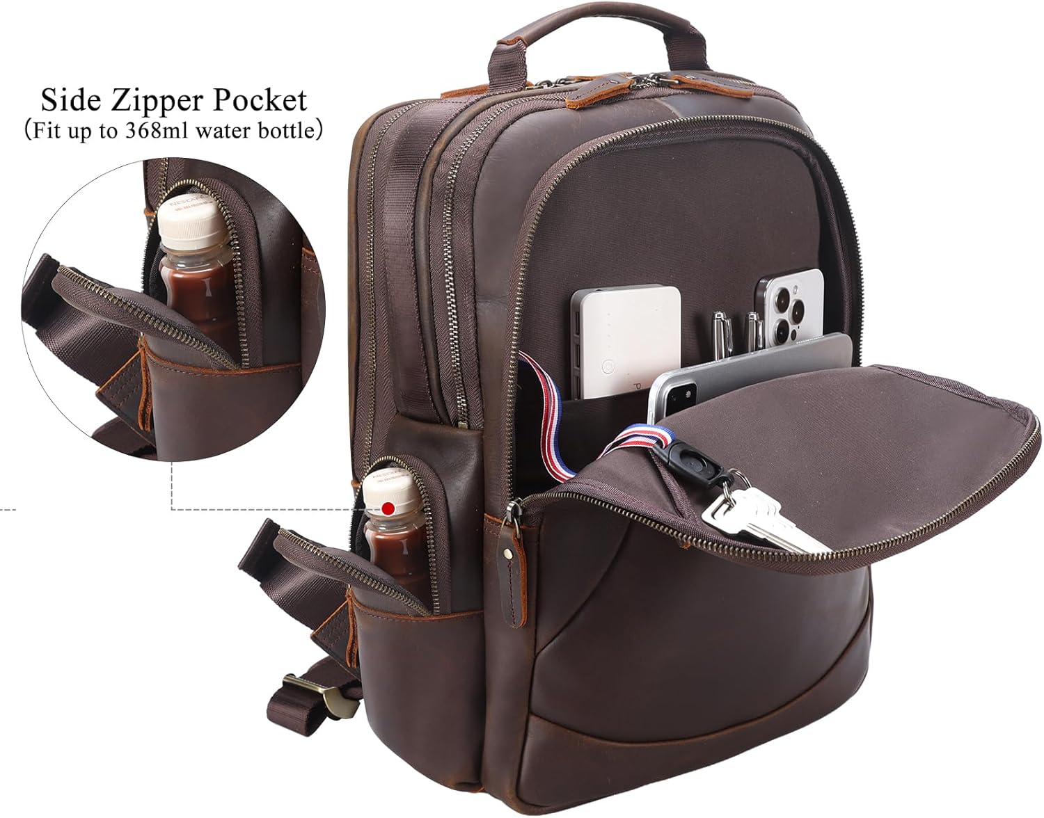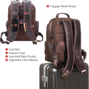 TIDING Vintage Laptop Backpack for Men 15.6 Inch i##e##s: Full Grain Leather ^^ Large Capacity ^^ Travel Rucksack ^^ Weekender ^^ Camping ^^ Daypacks :i##e##s